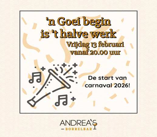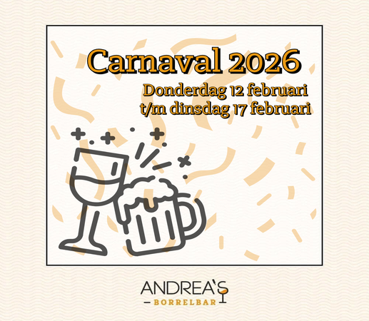 We zijn druk bezig met het invullen en vorm geven van de website. Houdt deze dan ook, samen met onze socials, in de gaten voor de laatste updates met betrekking tot de aankomende activiteiten. We zien je graag snel bij Andrea's Borrelbar!